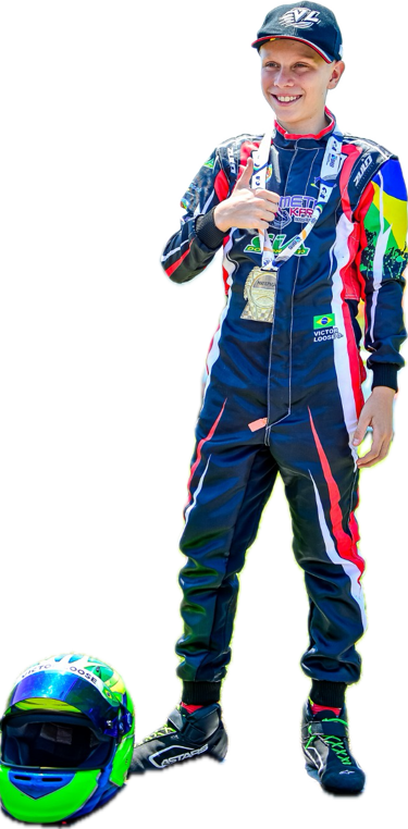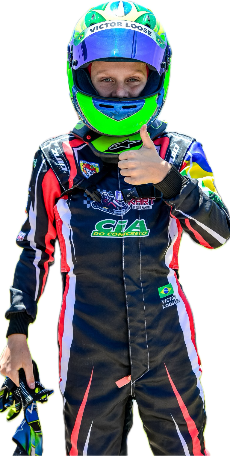 Victor Loose, 11 anos, é apaixonado por velocidade desde os 7 anos. Sua trajetória no automobilismo começou em 2022, no Kartódromo de Guapimirim, no Rio de Janeiro, onde rapidamente passou a deixar sua marca com grandes conquistas. Com muito esforço, dedicação e aprendizado constante, Victor vem acumulando títulos regionais e nacionais, mostrando talento e determinação dentro das pistas. Seu grande objetivo é chegar ao topo do automobilismo.